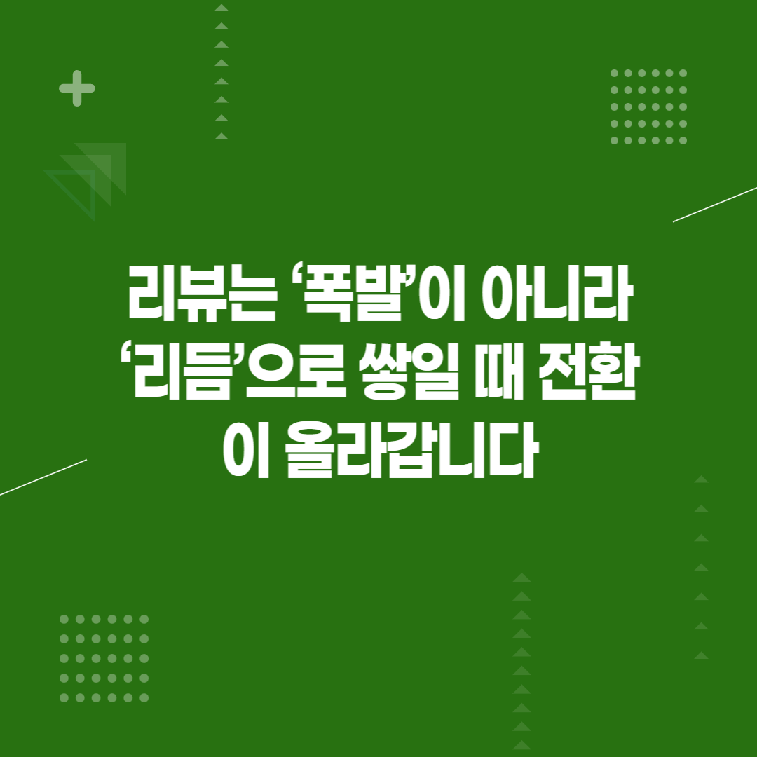3. 리뷰는 ‘폭발’이 아니라 ‘리듬’으로 쌓일 때 전환이 올라갑니다