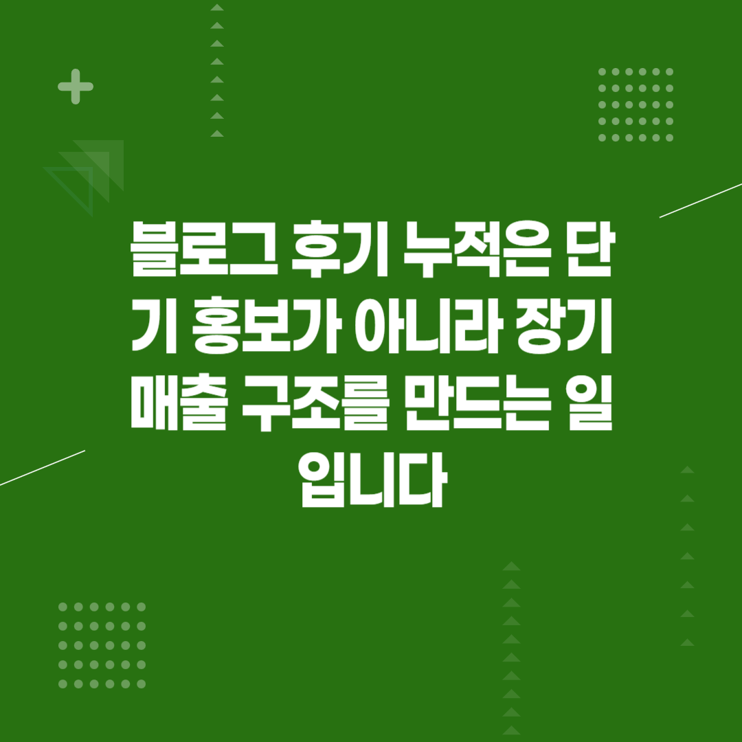 블로그 후기 누적은 단기 홍보가 아니라 장기 매출 구조를 만드는 일입니다