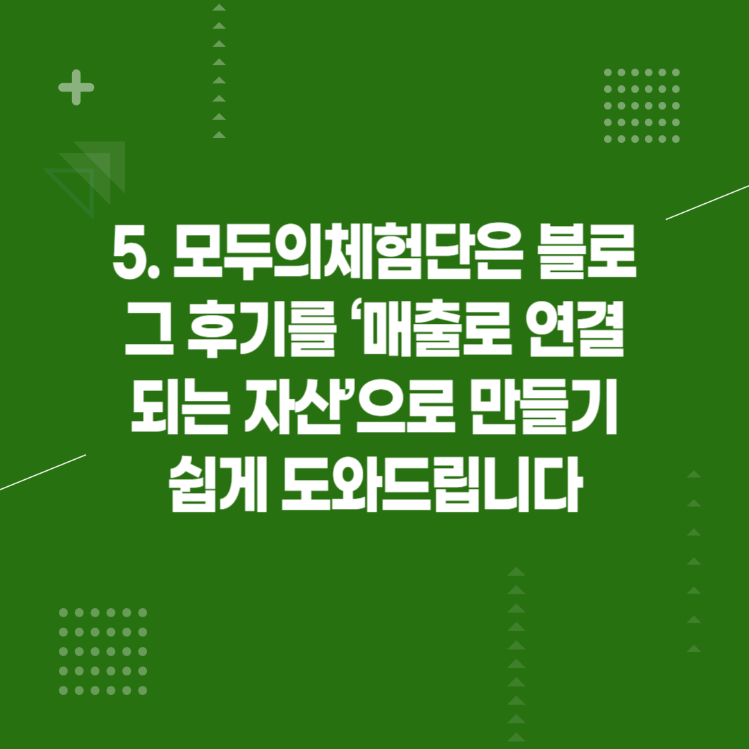 5. 모두의체험단은 블로그 후기를 ‘매출로 연결되는 자산’으로 만들기 쉽게 도와드립니다